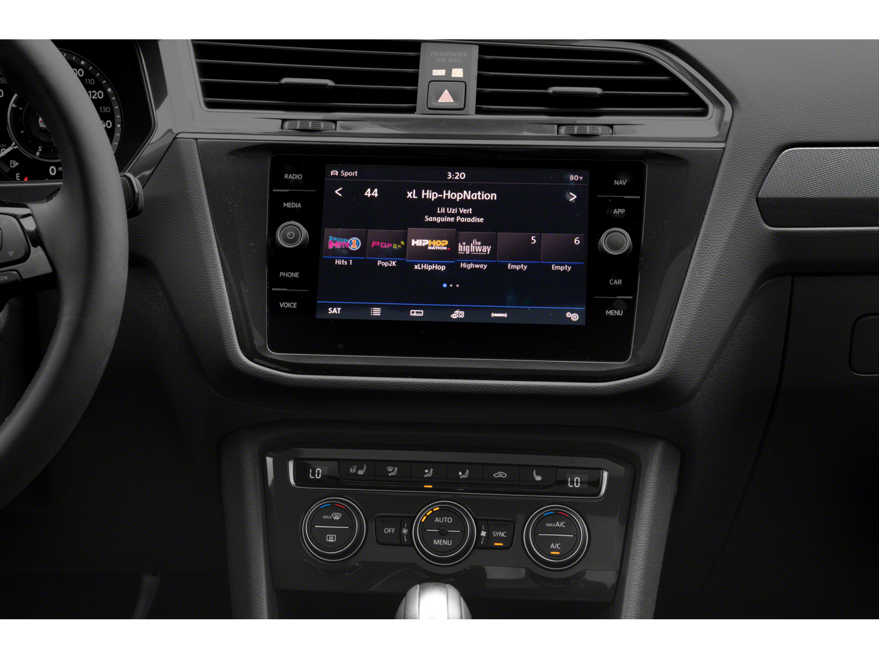 - Radio: Discover Media AM/FM/HD -inc: 8" touchscreen navigation, dual USB input, voice control, 6-speaker sound system, VW App-Connect smartphone integration and interface w/Apple CarPlay, Android Auto and MirrorLink, capability for in-vehicle 4G LTE enabled Wi-Fi (cellular data plan required; includes limited trial), capability for VW Car-Net services (capabilities for certain services vary; requires enrollment or subscription), Bluetooth® connectivity (for compatible devices), SiriusXM satellite radio w/limited-time trial subscription and USB charging-only port facing 2nd row seat